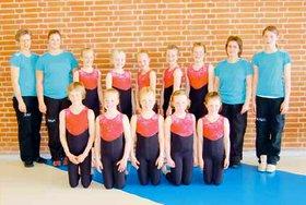 Mini-gymnasterne er: Nederst fra venstre: Line, Emile, Silje, Ingrid, Mia. Øverst fra venstre: Trænere Karen og Maj Brit. Rikke, Anna-Cathrine, Sofie, Maria, Malou. Hjælpere: Karina og Laura.